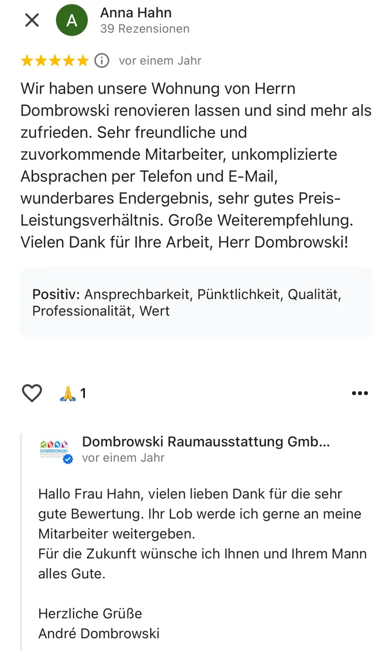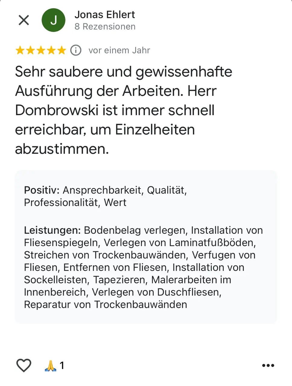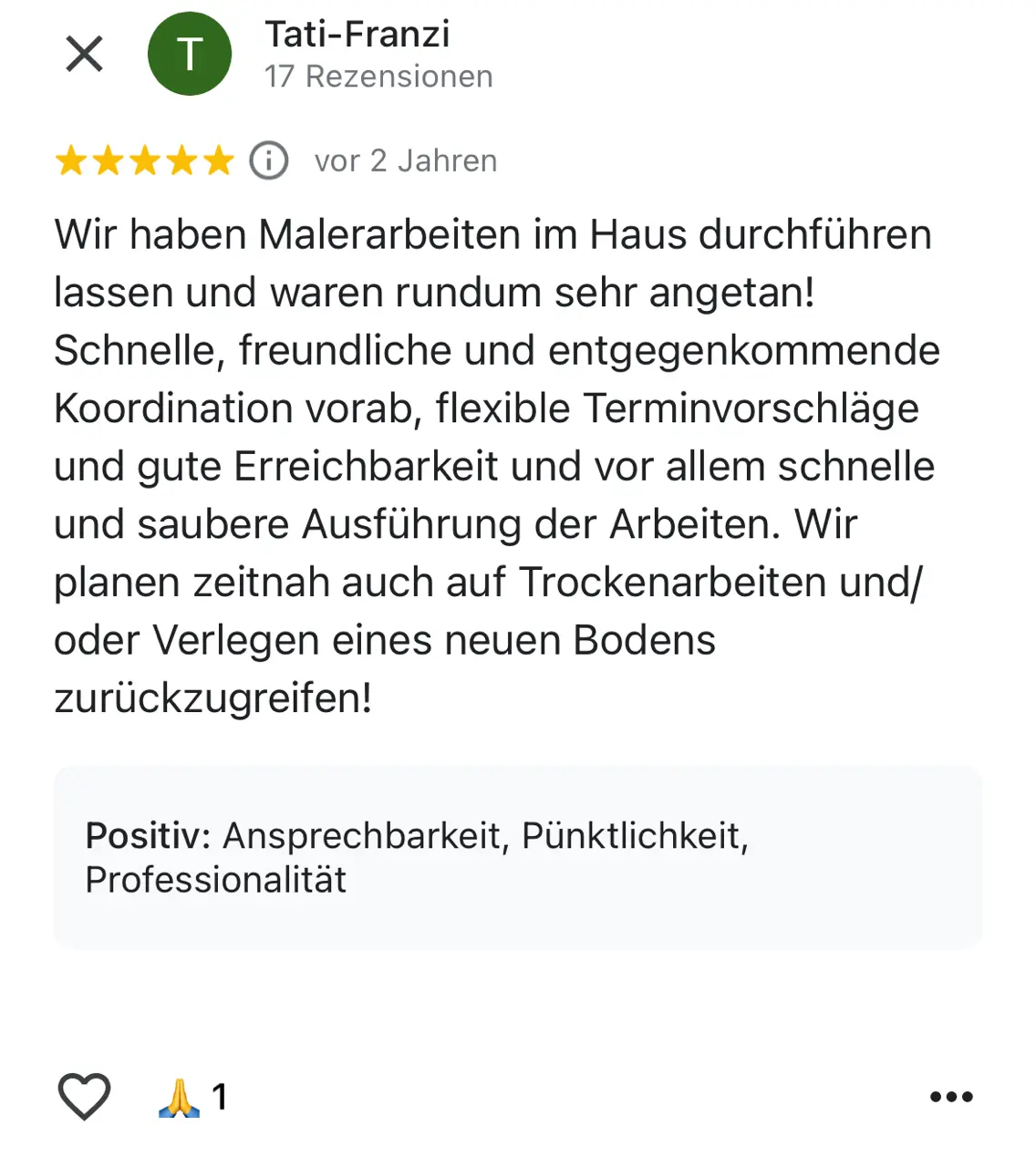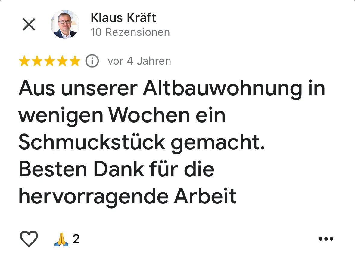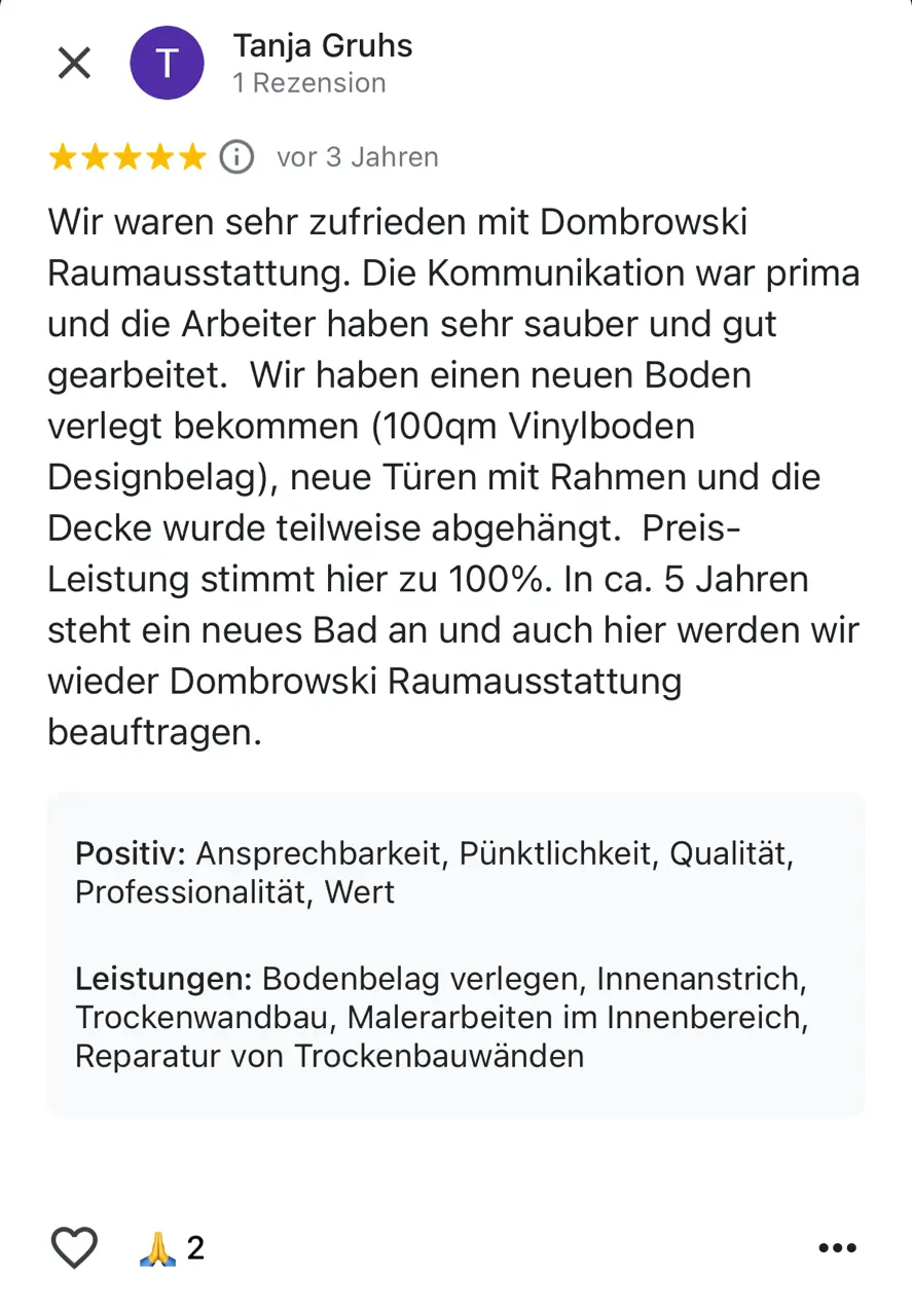 Zahlreiche Weiterempfehlungen bezeugen die herausragende Preis-Leistung insbesondere im Innenausbau & Trockenbau.